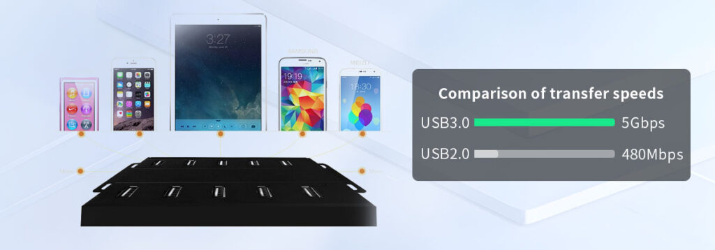 USB 3.0 boasts a transfer rate of up to 5Gbps, making it ideal for swiftly transferring large files and vast amounts of data.