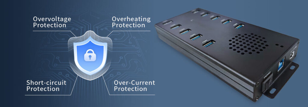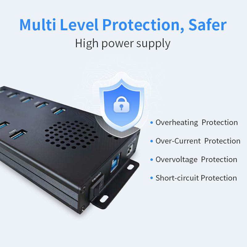 Ordinary USB hubs have no special protection, and overcurrent is easy to burn out the device and lose data! The industrial USB hub has short-circuit, overload, and over-voltage protection, and monitors the current in real time like a “fuse” to protect the connected peripherals from damage!